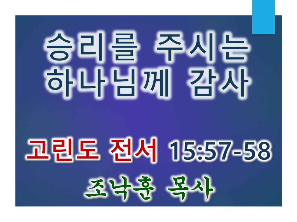 57. 우리 주 예수 그리스도로 말미암아 우리에게 승리를 주시는 하나님께 감사하노니