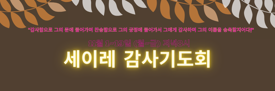 감사의 계절, 하나님 앞에 나가 감사함으로 감사와 축복이 넘치는 삶을 살아갑시다!!!