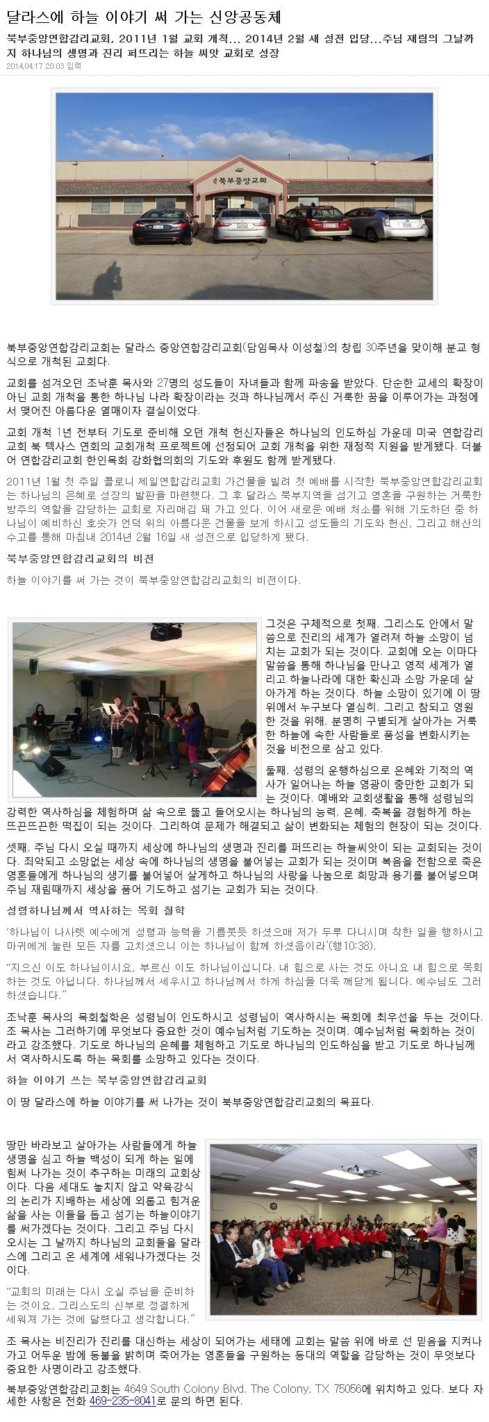 요즘 한인신문에 우리 교회 기사가 종종 실리네요KTN에 우리 교회 소개하는 기사가 나왔답니다.